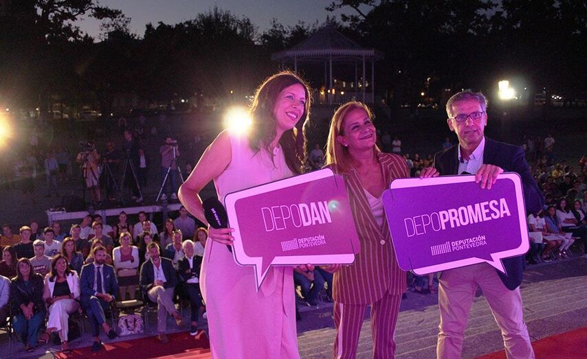 A presidenta da Deputación, acompañada das deputadas e dos deputados provinciais e de alcaldes, alcaldesas, concelleiros e concelleiras, da man do condutor e condutora do acto, Terio Carrera e Begoña Fernández, e co acompañamento musical de “Two Mirror” e a actuación das/os ximnastas rítmicas de “Treboada”, participou activamente nun emotivo acto no que se rendeu homenaxe a máis de 112 deportistas que acadaron a categoría DepoDan e a máis de 71 DepoPromesa, que reciben, deste xeito, apoio da institución provincial para participar en competicións deportivas. “Os vosos éxitos son os éxitos deste territorio. Vivimos no paraíso e vós sodes o mellor deste paraíso”, asegurou Silva.