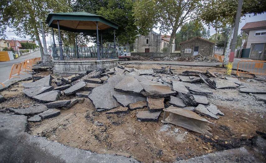 O espazo público anexo ao adro que se está a remodelar, alberga na actualidade un palco de música e un cruceiro e atópase pavimentado con aglomerado asfáltico, usándose como aparcadoiro e sen ofrecer seguridade suficiente para a veciñanza. Neste espazo hai ademais, nove plátanos de gran porte, árbores que, xunto coa igrexa, o cruceiro e o palco, cualifican a contorna.