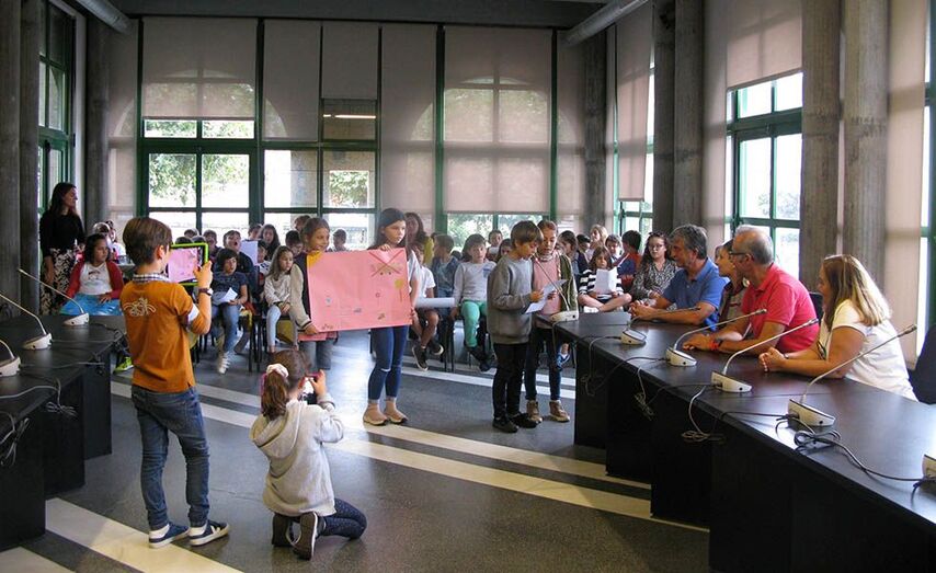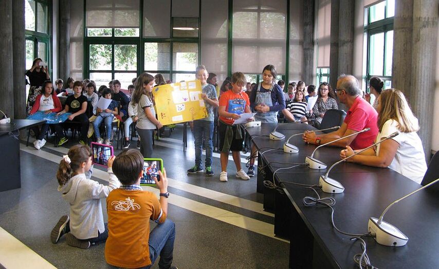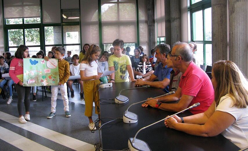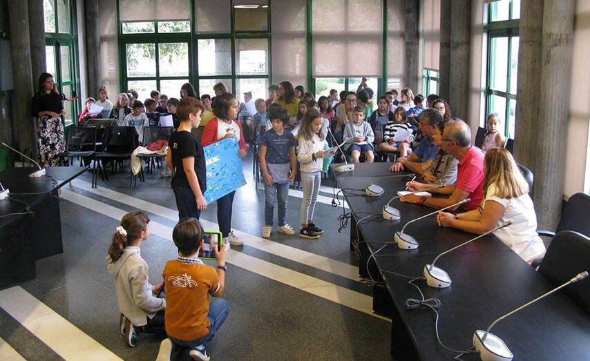 Estudantes de 4º de Primaria inspirados por Greta Thundberg transmitiron no salón de plenos as posibles acción locais para preservar a natureza
