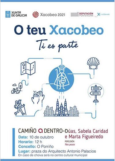O vindeiro xoves 10 chega a Porriño o proxecto cultural “Camiña a dentro”, unha acción promocional do Camiño Portugués que desenvolven Deputación de Pontevedra e Xunta de Galicia. Porriño acollerá unha das dez acción artísticas que se planificaron en distintos concellos polos que pasan o Camiño Portugués e o Camiño pola Costa.