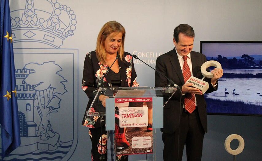 A presidenta da Deputación de Pontevedra, Carmela Silva, e o alcalde de Vigo, Abel Caballero, deron a coñecer esta mañá a segunda edición do DepoDesafío Tríatlon que estaba previsto para este domingo e que por mor da climatoloxía aprázase ata novo aviso, aínda que se está preparando, se o tempo acompaña, para o 27 de outubro. “Por precaución e pola montaxe prevista para Samil é aconsellable parar o DepoDesafío”, asegurou Carmela Silva quen enxalzou esta proba que vai xa pola súa segunda edición.