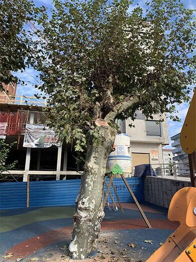 Estánse a retirar un plataneiro situado dentro do recinto de xogos, e tres tilos. Un centenario e outros dous máis xóvenes que están diante do acceso principal ó Hotel Parque. Primeiramente retiranse as polas e logo se talarán os troncos pola base.