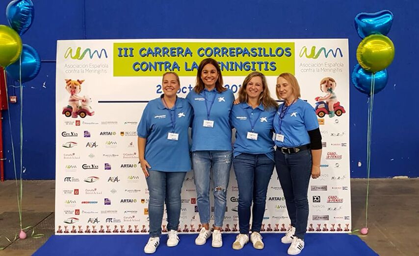 Un equipo de Voluntarios de ”la Caixa” en Vigo ha colaborado con la Asociación Española contra la Meningitis en el desarrollo de la III Carrera Correpasillos, para ayudar a la asociación en su labor de difusión, investigación y ayuda a las personas que padecen meningitis y sus familias.