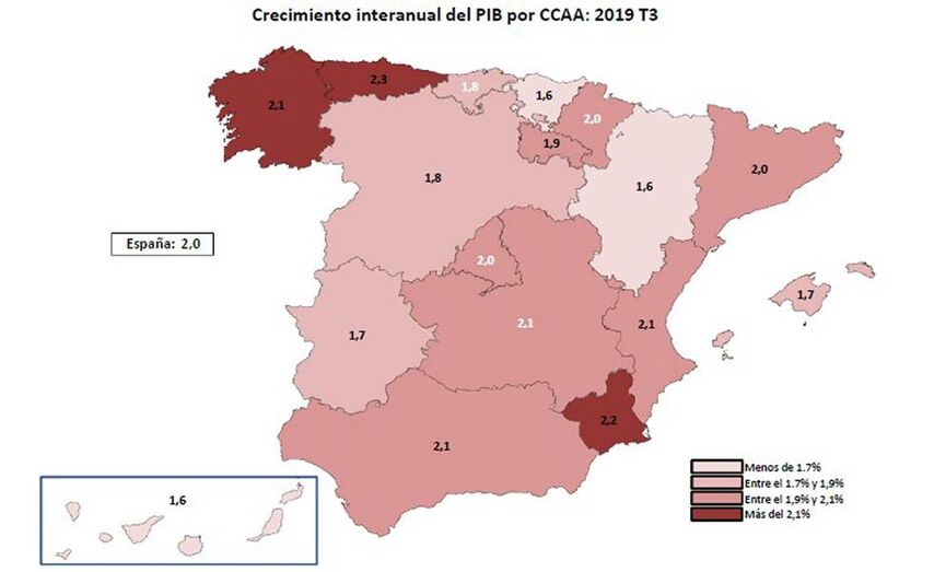La publicación de los datos se realiza una vez el Instituto Nacional de Estadística (INE) ha publicado el dato de avance trimestral del PIB de España, como ha ocurrido con los datos publicados el 31 de octubre de 2019. El resumen de los datos de estimaciones del crecimiento del PIB por CCAA y su evolución tanto en tasas intertrimestrales como en tasas interanuales se puede observar en el siguiente gráfico: