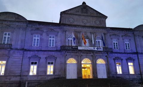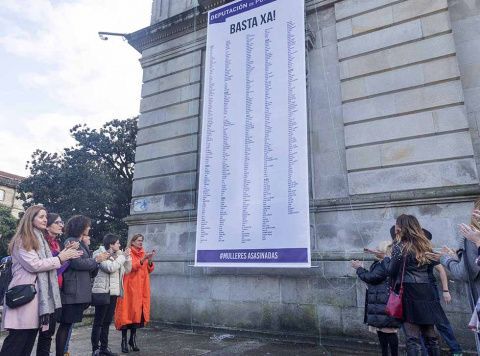 O Pazo da Deputación conta xa coas dúas lonas renovadas nas que figuran os nomes das 1.027 mulleres asasinadas en España nos últimos 16 anos