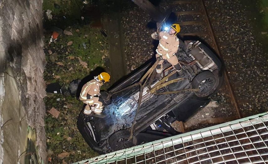 Dous feridos tras precipitarse co seu coche ás vías del tren