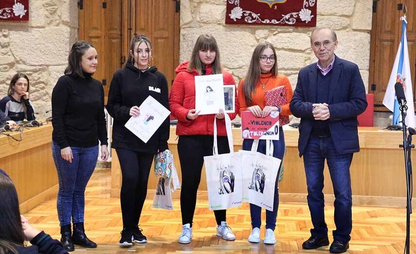 No marco da programación específica deseñada pola Concellería co motivo do Día Internacional contra a violencia de xénero, fixose entrega dos premios ao alumnado de primaria e secundaria para pasar á lectura do manifesto no salón de plenos da Casa do Concello.
