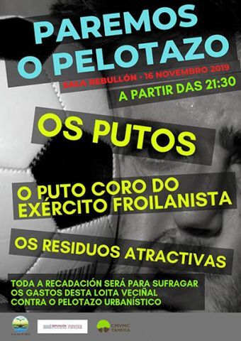 Baixo o título de "Paremos o pelotazo" actuaron os grupos Residuos Atractivas, Os Putos e O Coro do Exército Froilanista, destinando o importe da entrada, según declaraban textualmente dende a plataforma "integramente a sufragar os gastos desta loita veciñal contra o pelotazo urbanístico". As entradas foron cobradas a 6 euros anticipada e a 8 euros en taquilla.