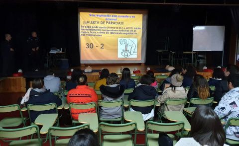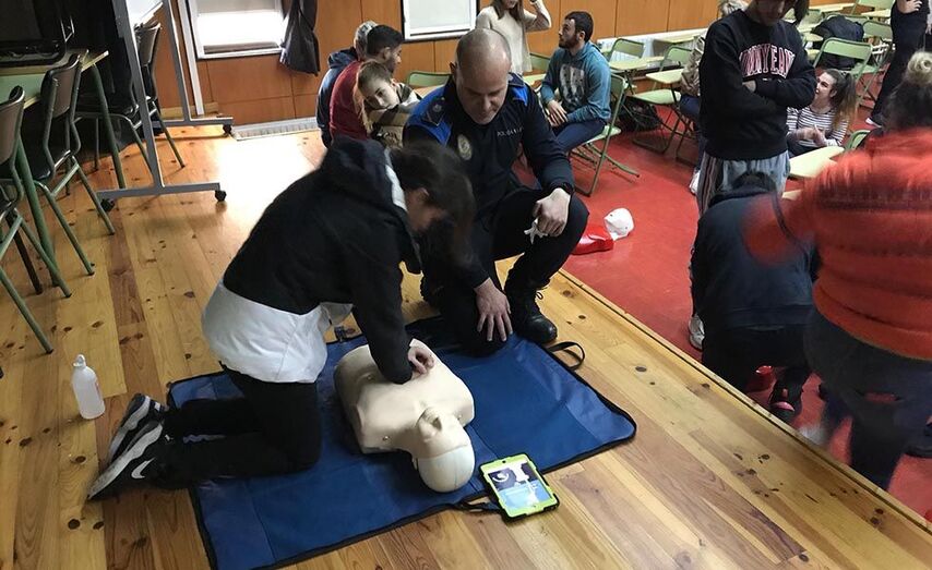 Durante as clases que se realizan entre hoxe e mañán mércores, os estudantes reciben formación teórica e práctica para saber reaccionar ante un atragantamento, unha hemorraxia, queimaduras ou unha parada cardiorespiratoria. A aprendizaxe inclue tamén a manobras de RCP (reanimación cardio pulmonar) como se pode observar nas imaxes adxuntas.