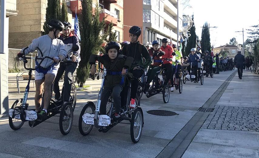 Nenos e nenas dos colexios de Nigrán CEE Juan María, Humberto Juanes, da Cruz e Mallón; xunto a IES Terra de Turonio de Gondomar, IES Primeiro de Marzo de Baiona e o proxecto Discamino, protagonizaron esta primeira gran marcha pola diversidade que arrancou na Praza do Concello de Nigrán ás 11:00 horas coa lectura dun manifesto a cargo de rapaces do Juan María e nenos do Humberto Juanes no que se reclamou, entre outras cousas, a accesibilidade dos espazos públicos e privados, unha inclusión educativa real e ter un emprego en condicións de igualdade. Todos xuntos pedalaron nas súas bicicletas (entre elas as catro bicicletas adaptadas do Concello de Nigrán e as de Discamino) ata o Pavillón de Panxón, onde o Concello ofreceu unha chocolatada.