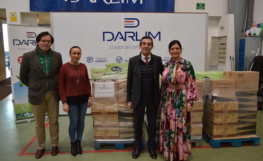 A alcaldesa de Mos, Nidia Arévalo, e a concelleira de Política Social e Igualdade mosense, Sara Cebreiro, visitaron onte as instalacións da empresa Darlim no Polígono da Granxa para recibir de mans do seu director, Indalecio Cuevas, a aportación de alimentos coa que cada ano esta empresa de productos de limpeza colabora na campaña de Nadal Solidario de Mos Axuda.