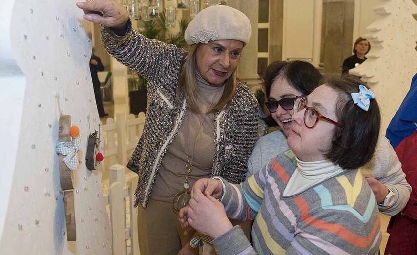 Así, o Pazo da Deputación luce xa “marabillas de decoración de Nadal” feitas sobre madeiras, troncos, pedras, material reciclable e sostible, con luces LED e elementos “todos eles respectuosos co planeta”. Ademais, foron os elementos nos que participaron activamente as persoas integrantes de Igualarte e Juan XXIII, “grandes artistas, un orgullo e un exemplo para o conxunto da sociedade” –tal e como asegurou Carmela Silva-, que se encargaron de decorar o vestíbulo do Pazo con elementos de madeira pintados a man. “Todas as persoas temos dereito a participar en todo, e todas e todos temos grandes capacidades e somos creativas e creativos, así que agradezo moito que Igualarte e Juan XXIII teñan participado con nós nun Nadal sostible”.