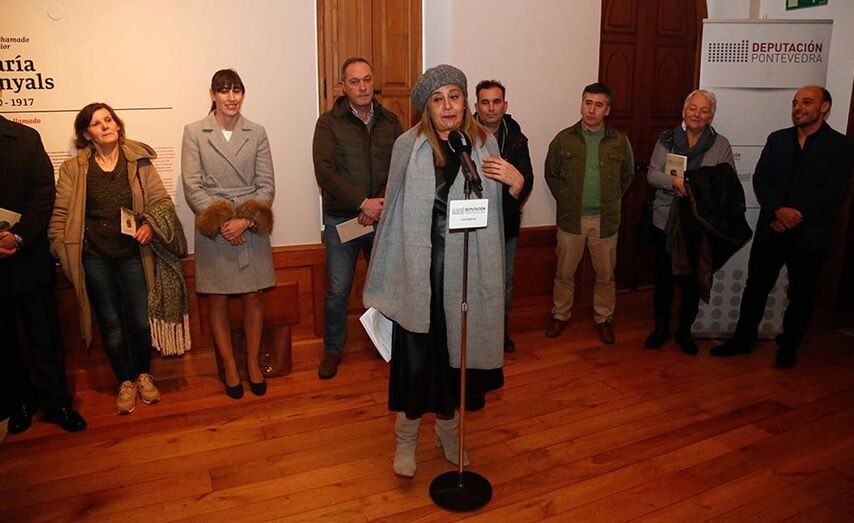 Amais de por Sofía e Joao Sampaio, propietarios do Libro de Visitas no que figura o debuxo do Castelo, a presidenta da Deputación estivo acompañada polo alcalde de Soutomaior, así como de persoas que colaboraron con material sobre a vida da activista. Entre elas Rosa María Pujol, representante da familia de Carolina Correa, amiga a quen María Vinyals enviou o debuxo inédito que agora se expón; Marcelina O Campo, propietaria dun xoieiro de María Vinyals que no seu día entregou á familia de Marcelina como pago; a investigadora Mercedes Fernández, cuxa familia aportou valiosa documentación; ou o párroco de Soutomaior, José Vidal, gran colaborador nas investigacións nos rexistros parroquiais sobre María e a súa descendencia.