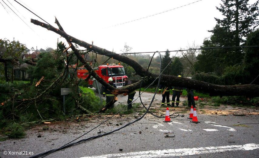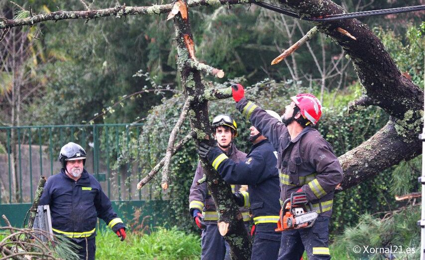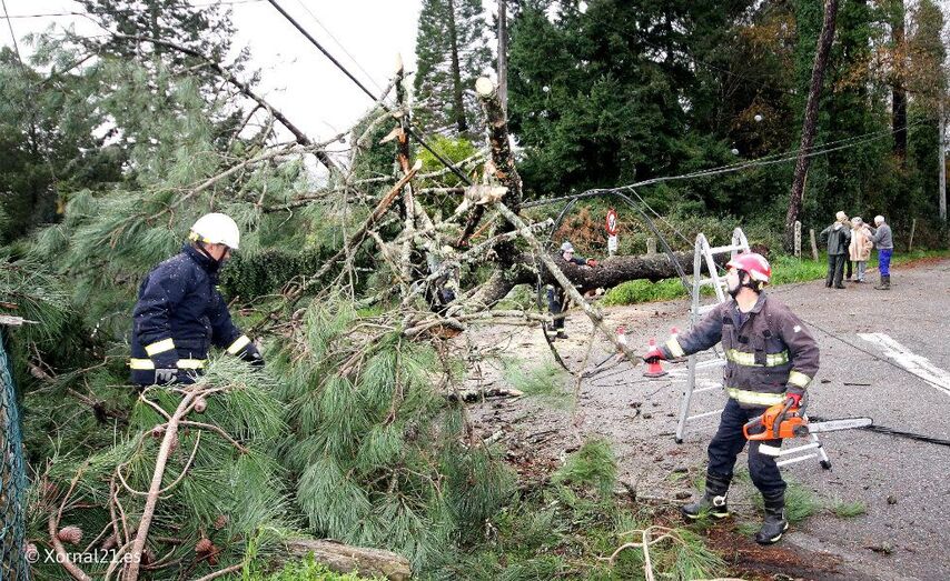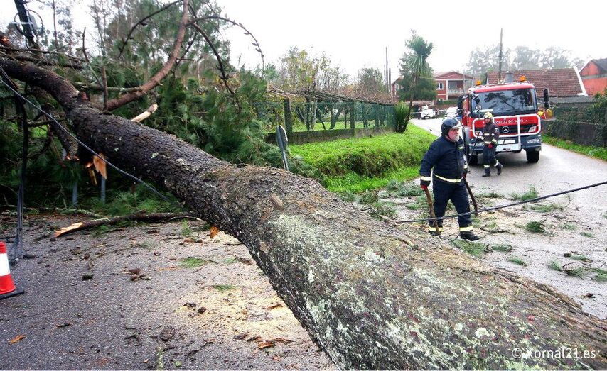 Se han registrado numerosas caídas de árboles entre ellas la de dos ‘eucaliptos’ de grandes dimensiones que mantuvieron cortada la PO331, ayer viernes. Hoy mismo se ha desplomado en la parroquia de Torroso un árbol de grandes dimensiones que ha cortado totalmente la carretera Alto de Barreiros – As Baloutas, derribando cables de tendido eléctrico y de telefonía, los voluntarios de Protección Civil y el Servicio Municipal de Emergencias trabaja en su retirada.