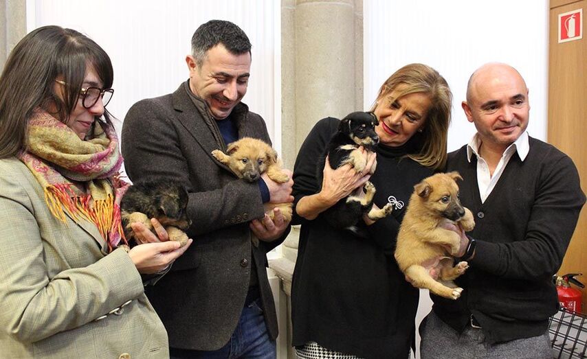 Na presentación do balance do CAAN Carmela Silva rodeouse dos cachorros “Ares”, “Ceo”, “Terra” e “Sabela”, que como lembrou foran abandonados o pasado mes de decembro nun colector en Vilanova e que puideron recuperarse no centro. “Aínda están recibindo os coidados pertinentes, pero xa están fóra de perigo _sinalou a presidenta_. Cando os recollemos tiñamos dúbidas de si poderíamos sacalos adiante e aquí están agora. É para estar contentos e é unha boa forma de comezar o ano, dicindo que están fóra de perigo. Agora esperamos que pronto os adopten, que seguro que vai ser así”. E, a este respecto, fixo de novo un chamamento para acadar a adopción de “Apro”, que trala marcha de “Bertín”, é agora o avó do CAAN, no que leva cinco anos.