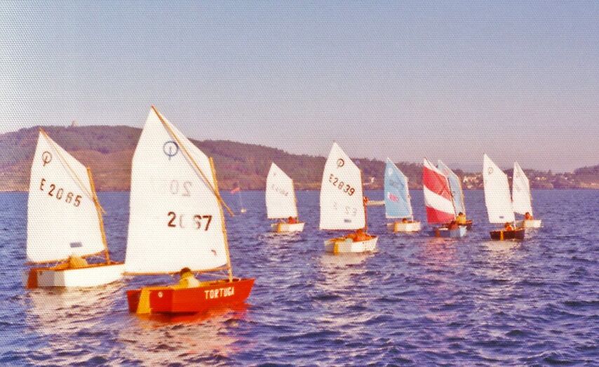 Los Optimist españoles se construían en Barcelona (La Industrial Velera Marsal), en Palma de Mallorca (los astilleros Copino y Darder), en Torrejón de Ardoz (Taylor Española) y aquí en Galicia, en los prestigiosos Astilleros Lagos de Bouzas (Vigo), de los que salieron gran parte de las unidades que navegaron a partir del año 70. Eran Optimist que se hacían a imagen y semejanza de los primeros barcos de este tipo nacidos en Clearwater (Florida).