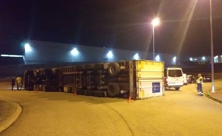 El conductor de un trailer que circulaba por el Parque Empresarial de Mos, en Veigadaña, resultó herido la pasada noche tras perder el control del trailer que conducía y volcar en la carretera.