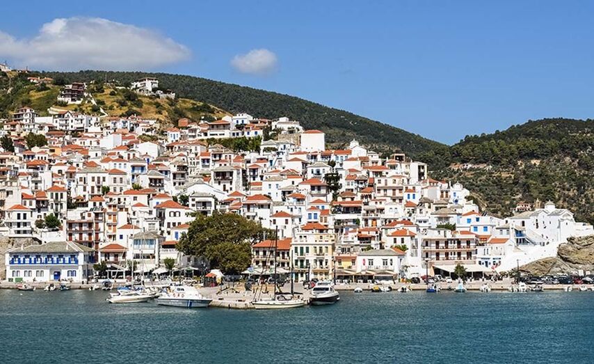 Skopelos es un caso peculiar ya que el rodaje de la película Mamma Mia con Meryl Streep y Pierce Brosnan revolucionó la isla hasta el punto que está viviendo todavía hoy una época dorada con turistas llegados de todo el mundo para ver las localizaciones paradisíacas que sirvieron de telón de fondo para el film.