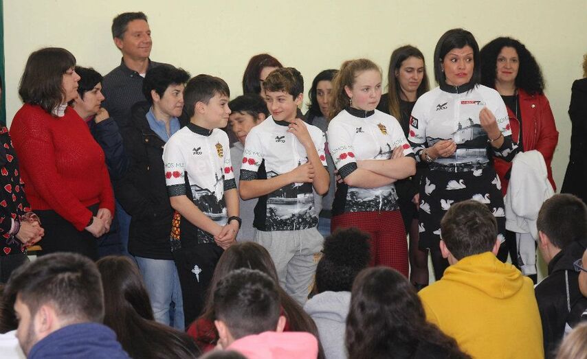 Esta mañá realizouse a presentación oficial do maillot institucional do Concello de Mos conmemorativo de La Vuelta Ciclista a España no IES de Mos. Asistiu como público o alumnado de varios cursos que nesa hora tiña clase de Educación Física, xunto cos seus mestres.