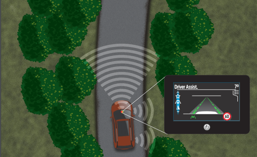 Diseñada para su uso en carreteras rurales a velocidades de 70-110 km/h, la tecnología Road Edge Detection utiliza una cámara situada debajo del espejo retrovisor para vigilar los lindes de la carretera a 50 m delante del vehículo y a 7 m a los lados.