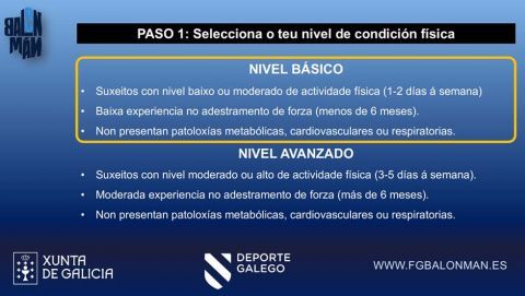 Na páxina web da Secretaría Xeral para o Deporte pódense consultar a día de hoxe os plans de traballo para os deportistas das federacións galegas de atletismo, bádminton, balonmán, fútbol, karate, judo, loita, natación, piragüismo, remo, salvamento e socorrismo, taekwondo, tríatlon e péntatlon moderno, xadrez, ximnasia e vela. Ademais da planificación deportiva de cada federación durante o período de confinamento amosada con exercicios físicos para realizar na casa e vídeos explicativos, as federacións tamén achegan unha serie de pautas psicolóxicas a seguir na casa para non perder o ánimo e manter a concentración. Cómpre salientar o esforzo dalgunhas federacións que ademais do seu plan de adestramento achegan unha serie de exercicios a realizar na casa adaptados ao nivel de cada deportista. Tamén se achegan pautas nutricionais, recomendacións para alimentarse correctamente e consellos para facilitar a corentena.