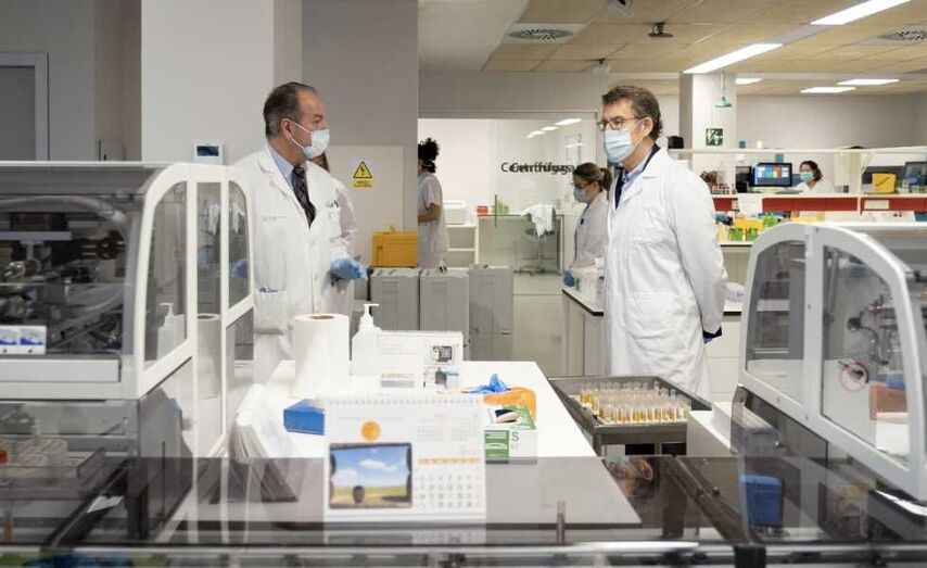 O presidente do Goberno galego, Alberto Núñez Feijóo, visitou esta mañá en Vigo as instalacións de microbioloxía onde se levan a cabo as análises das probas diagnósticas (PCR), das que Galicia levaba realizadas dende o comezo da pandemia ata onte un total de 53.829 tests.