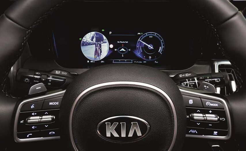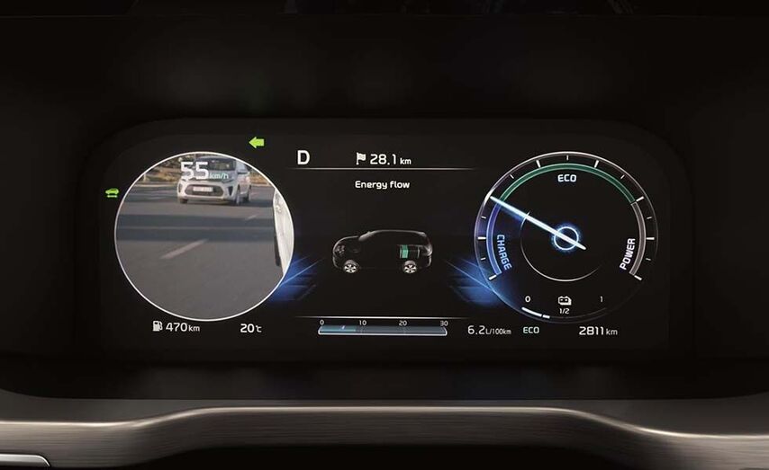 El Sorento es el primer vehículo Kia en Europa que ofrece este avanzado sistema de asistencia a la conducción. Es una de las múltiples funciones de la nueva instrumentación totalmente digital "Supervision" de 12,3 pulgadas (31 cm). El BVM mejora la visión del conductor en ambos lados del coche cuando conduce por vías rápidas y está coordinado con los intermitentes.