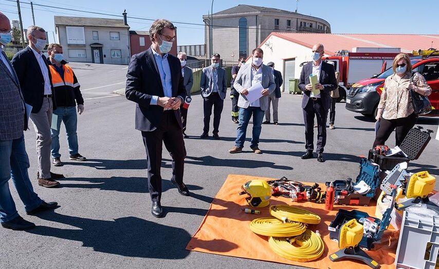 O presidente da Xunta, Alberto Núñez Feijóo, destacou hoxe en Curtis o traballo que están levando a cabo os grupos de emerxencias supramunicipais (GES) e os servizos municipais de Protección Civil durante a crise do coronavirus.