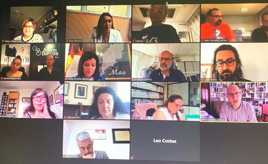 O Director Xeral de Políticas Culturais, Anxo Lorenzo, e o Secretario Xeral de Política Lingüística, Valentín García, da consellería de Cultura e Turismo da Xunta de Galicia, reuniúronse esta semana por videoconferencia coa alcaldesa de Mos, Nidia Arévalo, coa concelleira mosense de Cultura e Turismo, Sara Cebreiro, coa edil de Educación e Emprego, Julia Loureiro, e con empresas e autónomos mosenses que se dedican ao sector da cultura.