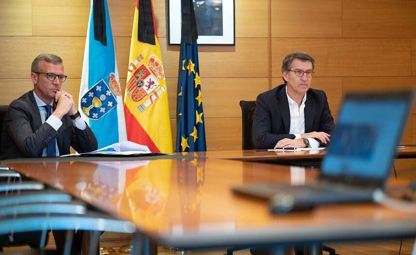 O presidente da Xunta, Alberto Núñez Feijóo, e o vicepresidente da Xunta, Alfonso Rueda, reuníronse por videoconferencia co presidente da Comisión de Coordinación e Desenvolvemento Rexional do Norte de Portugal (CCDR-N), Fernando Freire de Sousa