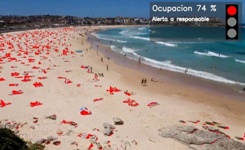Con esta solución de Telefónica, los ayuntamientos podrán controlar, de forma sencilla y eficaz, el aforo de sus playas a través de unas cámaras que captan fotogramas de la zona. El software instalado no graba imágenes y no almacena ningún dato personal, solo detectará las zonas del espacio que están ocupadas y cuáles están libres.
