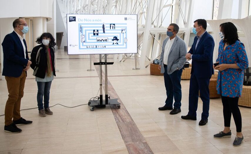 Galicia de Nós a nós será a segunda gran exposición do Xacobeo 2021 –tras Galicia, un relato no mundo– e inaugurarase a comezos do mes de outubro, despois de que tivese que ser reprogramada a data inicial –prevista para esta primavera– polos efectos da crise sanitaria da covid-19. O conselleiro de Cultura e Turismo, Román Rodríguez, e o director xeral de Políticas Culturais, Anxo Lorenzo, participaron nunha reunión de traballo cos comisarios da exposición –o investigador e académico da Real Academia Galega (RAG) Afonso Vázquez Monxardín e a profesora e investigadora da Universidade de Vigo Ana Acuña– e coa directora xerente da Fundación Cidade da Cultura, Ana Isabel Vázquez Reboredo.