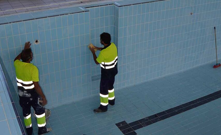 Os traballos que se están a realizar consisten no encintado do vaso da piscina e selado dos azulexos, así como tarefas de mantemento na sauna, vestiarios, etc. para que todos os espazos estean perfectamente preparados para o inicio da vindeira tempada.