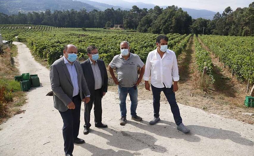 O deputado provincial Carlos Font xunto ao alcalde de Arbo, Horacio Gil, asistiu ao ensaio de vendima anti-covid levado a cabo por Marqués de Vizhoja, converténdose así na primeira adega de Galicia en poñer en marcha un simulacro previo destas características. Durante o acto púxose en práctica o protocolo desenvolvido polo equipo técnico e de campo da adega e tamén se explicaron as indicacións xerais e normas de prevención que se levarán a cabo durante a vendima. “Son un conxunto de medidas que garanten totalmente, en primeiro lugar, a saúde dos traballadores e traballadoras, e tamén do produto final, o viño para as persoas consumidoras”, destacou Font.
