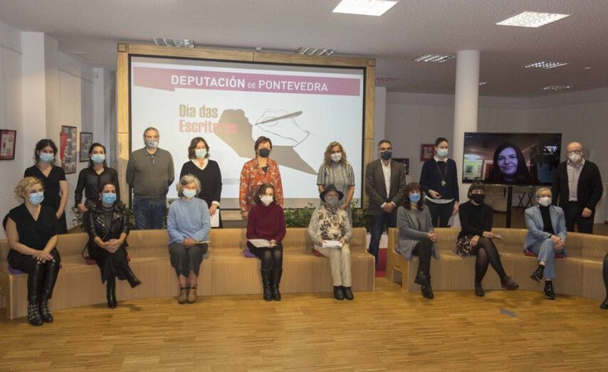 Ao abeiro do Día das Escritoras, a Deputación de Pontevedra rendeu esta tarde homenaxe e tributo, "case un desagravio", ás grandes mulleres da literatura que ao longo da historia, e a pesar de ser esquecidas nas antoloxías literarias, contribuíron coa súas obras á loita pola igualdade. Escritoras, mestras, xornalistas e mulleres e homes do mundo da cultura prestaron as súas voces para que fragmentos de obras inesquecibles de creadoras como Rosalía de Castro, Pardo Bazán, Carmen Baroja, Elena Fortún, Concha Méndez, Teresa de Jesús, Mercé Rodoreda, Josefina Carabias, Gloria Fuertes, Ana María Matute o Circe Maia, entre outras, soaran con forza na sede da Deputación en Vigo. Nun escenario coidado coas medidas de seguridade anti COVID-19, ambientado con luz violeta e adornado con camelias na sala Rosalía de Castro, a vintena de representantes das distintas disciplinas culturais protagonizaron esta lectura colectiva, que foi tamén retransmitida por streaming.
