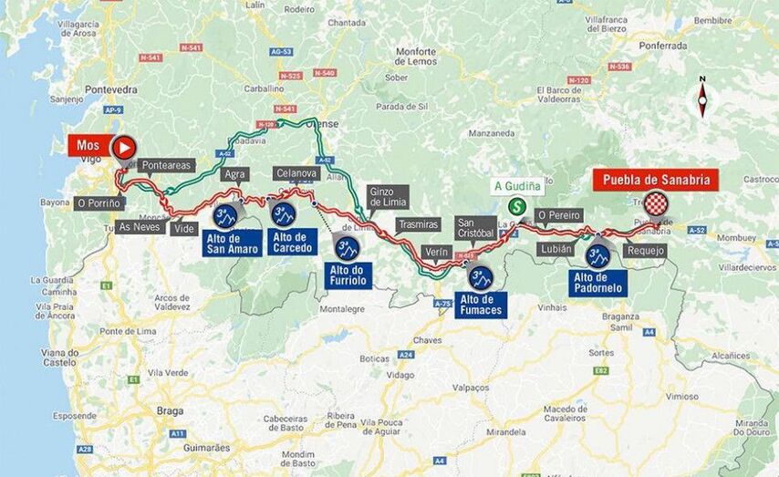 Los corredores se enfrentan a una jornada de 231 kilómetros entre Mos (Pontevedra) y Puebla de Sanabria (Zamora)