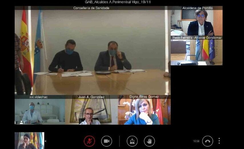 Os alcaldes e alcaldesas de Mos, Nigrán, Redondela, O Porriño e Gondomar reuníronse hoxe ás 13.00 horas por videoconferencia co conselleiro de Sanidade, Julio García Comesaña, nunha xuntanza informativa sobre a situación da crise sanitaria da COVID-19.
