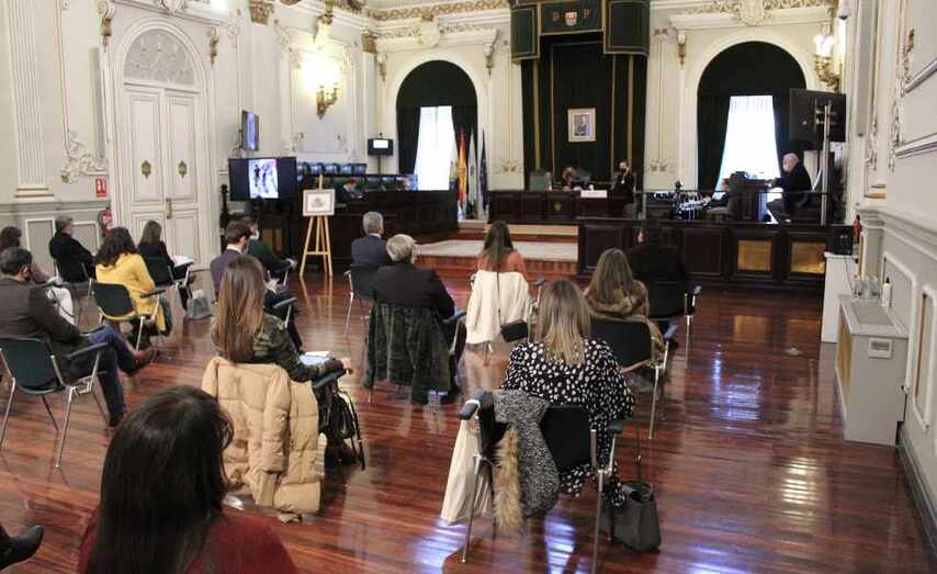Amais, na sesión repartíronse as postais cunha reprodución da ilustración que a artista Nana deseñou no Pavillón de Tui dentro do programa “Mulleres en Acción. Violencia Zero”, e que pon imaxe a situación que viviron e viven as mulleres e nenas maltratadas durante o confinamento. Baixo o título “Queda na casa”, a obra amosa a unha muller coas mans tapándose os ollos mentres ás súas costas arde a súa casa e, como destacou a presidenta Carmela Silva, reflicte o “terror das mulleres, nenas e nenos confinados cos seus maltratadores”. O proceso de elaboración do devandito mural foi proxectado así mesmo nun audiovisual no salón de plenos.