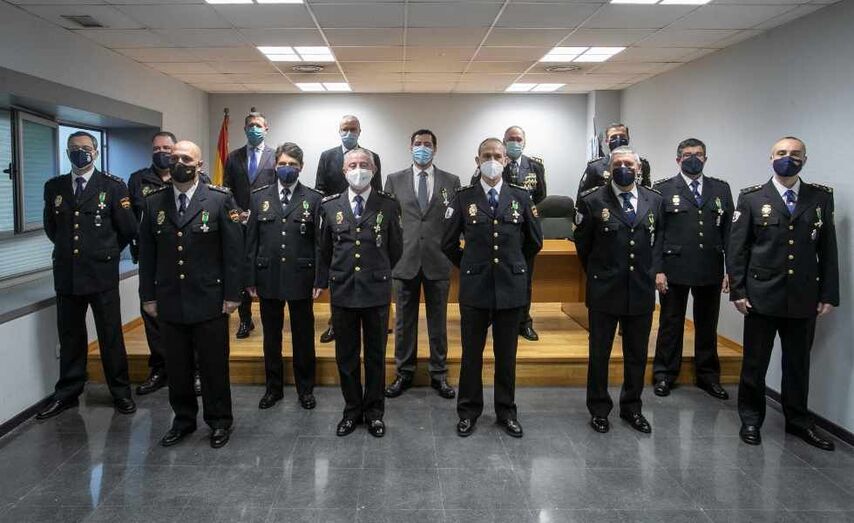 O director xeral de Emerxencias e Interior, Santiago Villanueva, e o comisario xefe da Policía Autonómica, Jorge Rubal, fixeron hoxe entrega das 9 condecoracións ao mérito policial con distintivo branco concedidas polo Ministerio do Interior a axentes de diferentes escalas da Policía Autonómica pola súa actuación singular e extraordinaria coa que contribuíron a aumentar o prestixio deste corpo de seguridade.