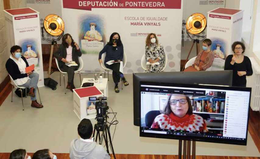 Co obxectivo de recoñecer o papel das mulleres no audiovisual, a presidenta da Deputación de Pontevedra presentou hoxe os primeiros premios #Mulleresnofoco, no decurso da xornada “Fóra de plano. Mulleres no audiovisual”, impulsada pola Escola de Igualdade María Vinyals e a Asociación de Mulleres Cineastas e de Medios Audiovisuais CIMA. No evento, que foi seguido on line por case 400 persoas, participaron, amais da presidenta, Cristina Andreu, presidenta de CIMA, Beli Martínez, produtora, Mónica Camaño, actriz, e Noemí Chantada, realizadora. Tamén presentáronse os resultados do Informe de CIMA, nos que se reflicte que soamente o 30% do persoal ao fronte de longametraxes en España durante o 2019 foron mulleres e que son elas as que dirixen as películas de menor orzamento. Ao respecto, a presidenta fixo fincapé en que “non lle quede a ninguén dúbida algunha de que as mulleres imos estar e reivindicar a nosa presenza no audiovisual, o talento extraordinario que temos e todo o que aportamos”.