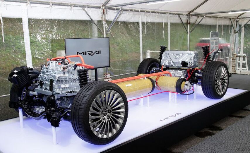 Por otra parte, la nueva arquitectura permite desplazar la nueva pila de combustible de hidrógeno de su ubicación actual, bajo el suelo, al compartimento frontal, que equivaldría al compartimento del motor, mientras que la batería de alto voltaje, aún más compacta, y el motor eléctrico están situados encima del eje posterior. La disposición del sistema motor se ha optimizado para otorgar al nuevo Mirai una distribución del peso ideal, de 50:50 entre el eje delantero y el trasero.