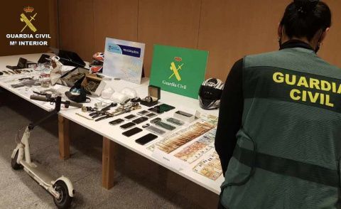 Culminada la investigación y como consecuencia de los registros efectuados, se incautó un total de 53,05 gramos de cocaína, 1 gramo de heroína, 178,4 gramos de hachís, 660 gramos de marihuana, 400 gramos de anfetaminas en polvo, 3.047 gramos de sustancia de corte, 6 básculas de precisión, 9 armas blancas, una pistola de aire comprimido, 19 móviles y 3 ordenadores portátiles, además de 16.600 €.