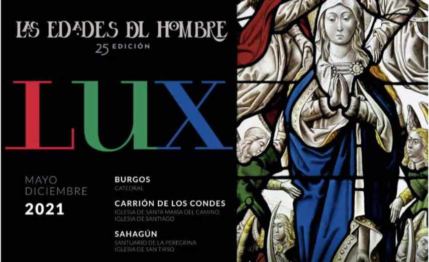 Bajo el vocablo latino ‘LUX’, Burgos, Carrión de los Condes y Sahagún albergarán la vigésima quinta edición de la exposición de Las Edades del Hombre, enmarcada en la celebración del Año Santo Jacobeo 2021 y el VIII Centenario de la Catedral de Burgos. Se desarrollará, previsiblemente, entre los meses de mayo y diciembre de 2021, si la situación sanitaria lo permite. Esta vigésima quinta edición de la muestra se desarrollará en tres provincias y cinco sedes expositivas, ejemplos de la arquitectura románica, mudéjar y gótica. La exposición partirá de Burgos, donde se abordará el origen y sentido de las catedrales; el relato tendrá como hilo conductor la figura de la Virgen María, presencia constante por las advocaciones marianas de muchas de las catedrales, como la de Santa María en Burgos, y de multitud de iglesias, ermitas y monasterios que jalonan la Ruta Jacobea, que recorrerá esta XXV edición de Las Edades, como la iglesia de Santa María del Camino en Carrión de los Condes y el Santuario de la Peregrina en Sahagún. http://www.lasedades.es/