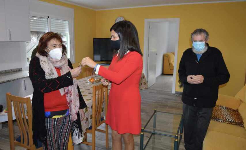Esta semana visitaron a casa de Pereiras a alcaldesa de Mos, Nidia Arévalo, o concelleiro da parroquia de Pereiras, Leo Costas, xunto co Presidente da Comunidade de Montes de Pereiras, Jorge Lorenzo, membros de Cáritas Pereiras-Petelos, e o veciño da zona e membro da Asociación de Veciños Nosa Terra de Pereiras, que fixo as veces de albañil encargado da obra, Raimundo Pérez Rodríguez, para entregarlle as chaves á propietaria da casa, Rosa Groba.