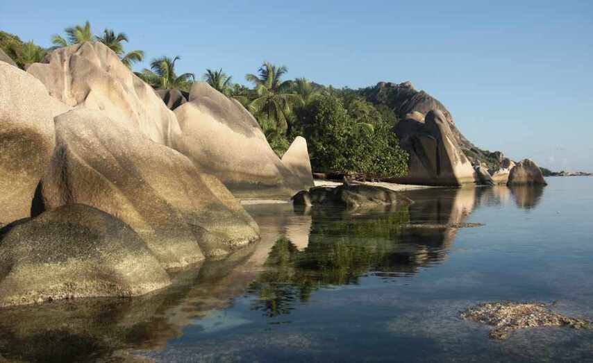 Otra playa espectacular es Anse Source d’Argent, en la isla de Digue, que fue bautizada con el nombre del barco de los primeros colonos franceses que poblaron la isla en 1768. En esta playa de ensueño, de arena que parece nácar y palmeras cimbreantes, emergen rocas pulidas como gemas. Es un tramo de arena blanquísima bañado por aguas azules que forman una bahía espectacular y la imagen más representativa y utilizada para mostrar lo que Seychelles ofrece. A pesar de su exuberante belleza, La Digue ha conseguido evitar en parte el creciente aunque moderado desarrollo turístico que tienen Mahé y Praslín. Tiene un ambiente más sosegado que las otras islas principales, con muy pocas carreteras asfaltadas y sin coches. Es un sitio para reencontrarse con la naturaleza, con alguna playa desierta para sentirse como en el Paraíso.