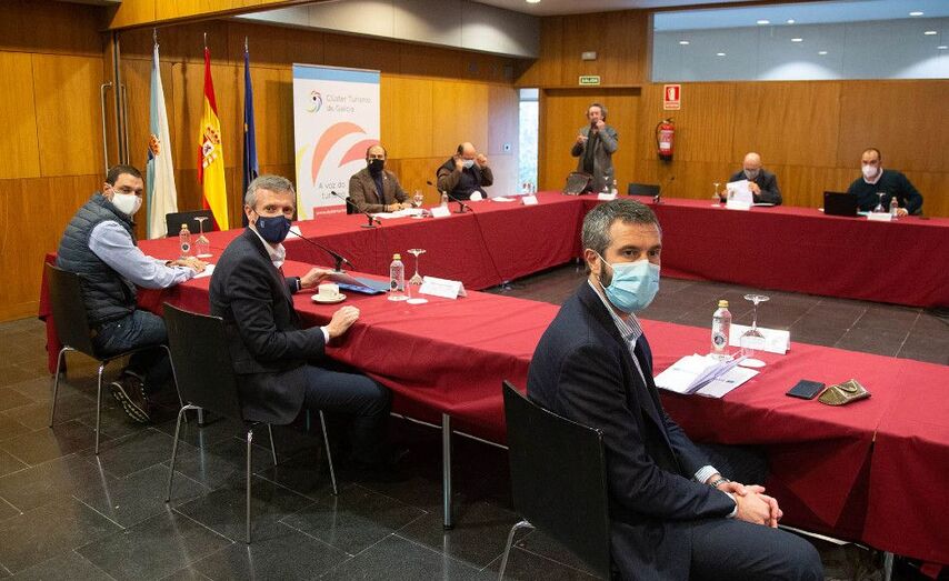 O vicepresidente primeiro e conselleiro de Presidencia, Xustiza e Turismo, Alfonso Rueda, e a conselleira de Emprego e Igualdade, María Jesús Lorenzana, mantiveron hoxe un novo encontro en Santiago de Compostela co presidente do Clúster de Turismo de Galicia, Cesáreo Pardal, co presidente da Federación Galega de Municipios e Provincias (Fegamp), Alberto Varela, e con representantes das deputacións provinciais, na que trasladaron que o Goberno galego seguirá adiante coa súa folla de ruta para activar a segunda convocatoria do Plan en febreiro.