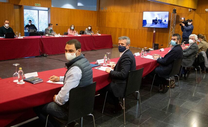 O vicepresidente primeiro e conselleiro de Presidencia, Xustiza e Turismo, Alfonso Rueda, e a conselleira de Emprego e Igualdade, María Jesús Lorenzana, mantiveron hoxe un novo encontro en Santiago de Compostela co presidente do Clúster de Turismo de Galicia, Cesáreo Pardal, co presidente da Federación Galega de Municipios e Provincias (Fegamp), Alberto Varela, e con representantes das deputacións provinciais, na que trasladaron que o Goberno galego seguirá adiante coa súa folla de ruta para activar a segunda convocatoria do Plan en febreiro.
