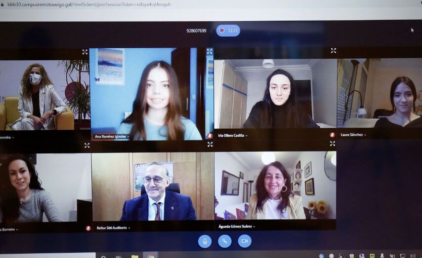 A Deputación de Pontevedra celebra este 11 de febreiro o Día Internacional da Muller e da Nena na Ciencia co claro compromiso, como sinalou a presidenta Carmela Silva, de “cambiar as cifras” que neste momento arroxa o mundo científico e que amosan que aínda se está a “deixar na cuneta o 50% do talento das mulleres”. “O mundo –dixo- cambia cando hai acción e non só intención, e nós temos intención, pero sobre todo acción”. As actividades coas que a institución provincial envórcase nesta conmemoración tiveron o seu punto central na entrega telemática desde Vigo dos primeiros premios GirlGeekCovid, cos que a Deputación e a Universidade de Vigo incentivan, apoian e fomentan os estudos STEAM entre as mulleres e que forman parte do traballo da Cátedra Feminismos 4.0. Dúas estudantes de Ciencias Ana Ramírez, de Bioloxía, e Laura Sánchez, de Química, e dúas de enxeñería, Iria Ollero, de Enxeñería Biomédica, e María Elena Márquez, alumna de Telecomunicacións, foron as catro alumnas galardoadas.