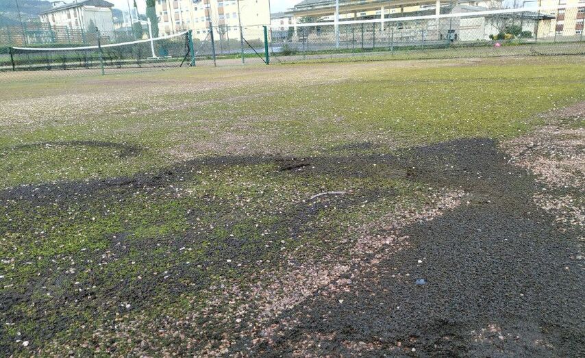 Os tenistas explican que "tanto as pistas de Torneiros, onde o firme está cheo de musgo, baches, barro e incluso vexetación e prantas, como as da rúa  Fernández Areal, que teñen musgo e baches, fan imposible a práctica deportiva nestas instalacións do autodenomidado o Concello do Deporte".