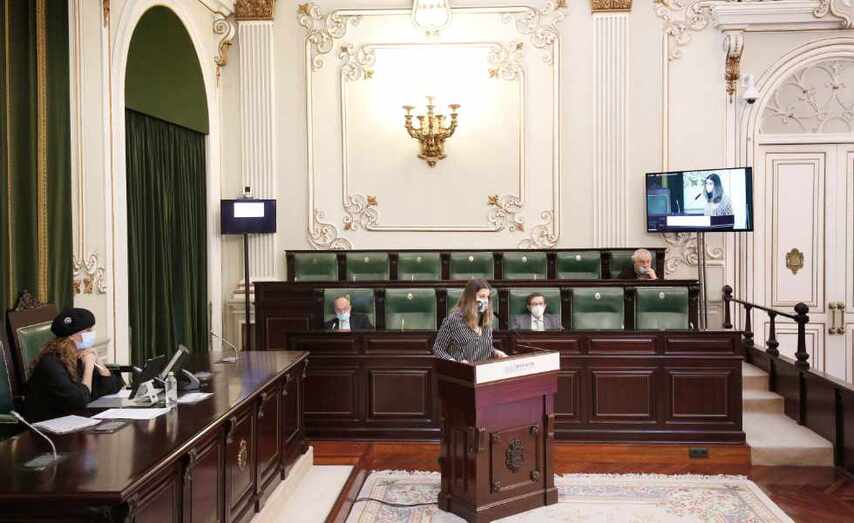 O pleno tamén escoitou o manifesto da ilustradora e música Laura Romero, unha das deseñadoras das máscaras do programa “Violencia Zero” que hoxe se repartiron no pleno. Romero fixo un repaso das reivindicacións das mulleres, desde a loita contra a violencia machista, á abolición da prostitución, do negocio dos ventres de alugueiro, á esixencia da paridade real, da visibilización das mulleres, ou da igualdade salarial. Como música, lembrou que o 70% das mulleres cobran menos da media dos homes, que os postos de mando seguen en mans masculinas ou que nos festivais non hai paridade nos escenarios.